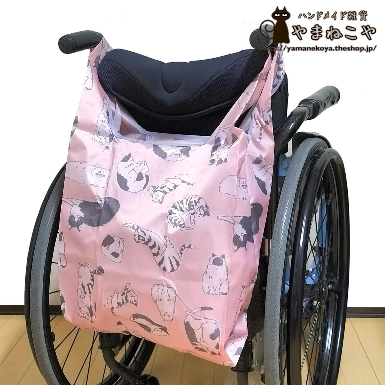 車いすに掛けにくい物も、一旦エコバッグに入れると掛けられます。