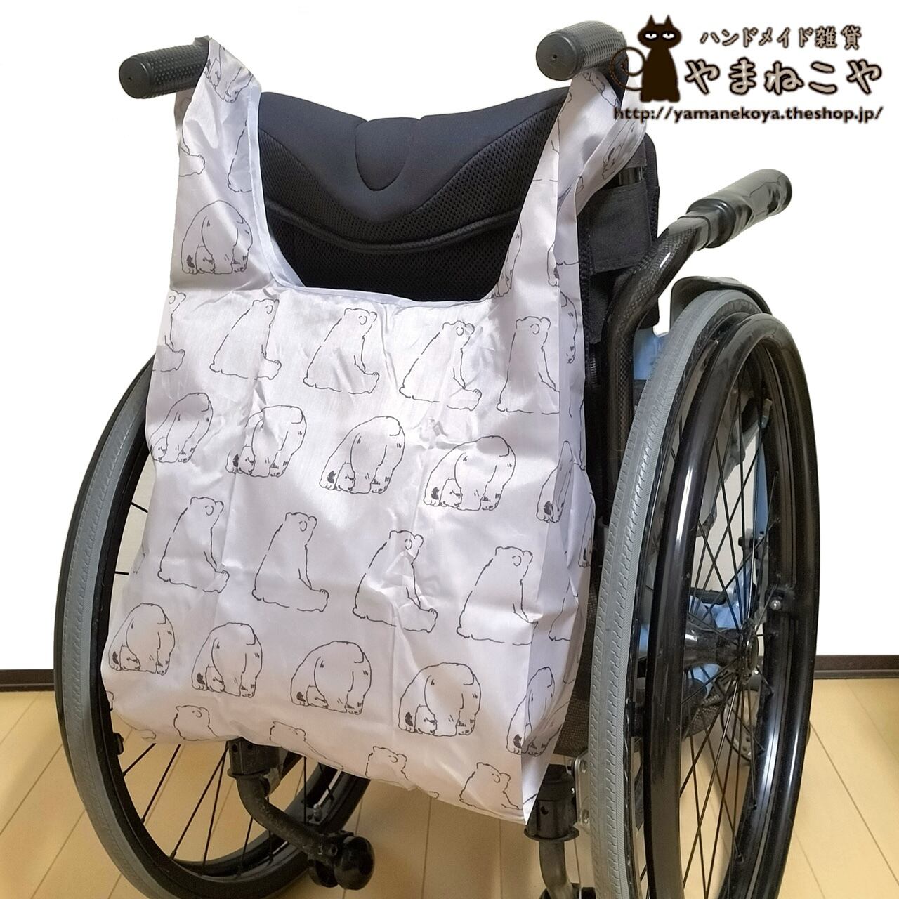 車椅子の押し手に掛けられるエコバッグ。