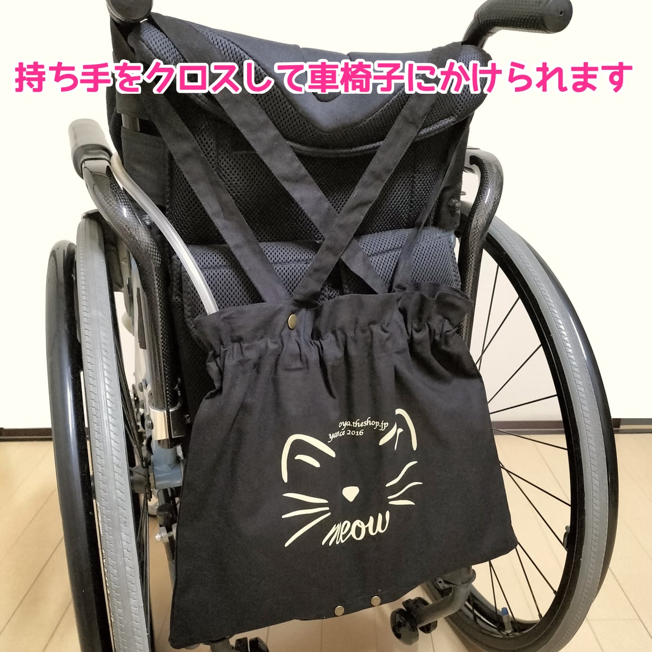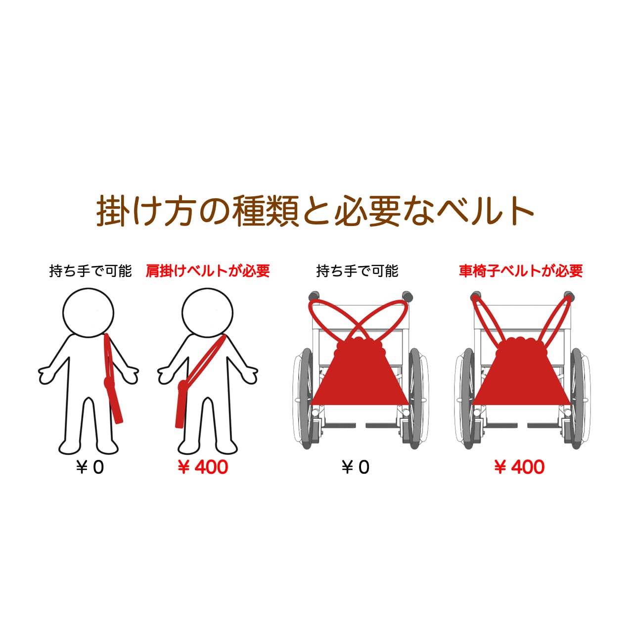 肩に掛けたり、車椅子後ろにかけたりできます。
