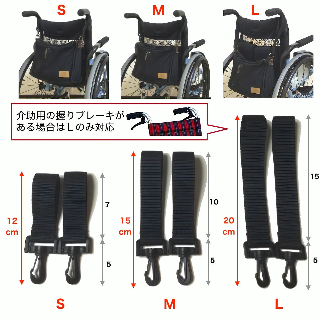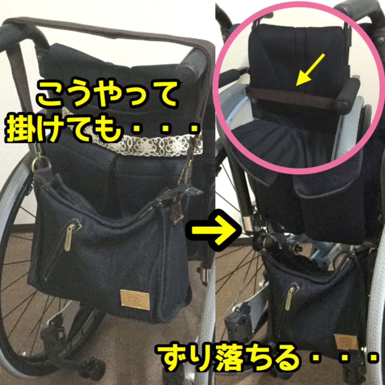 ※お使いの車イスの座幅よりも小さいバッグを掛けてください。