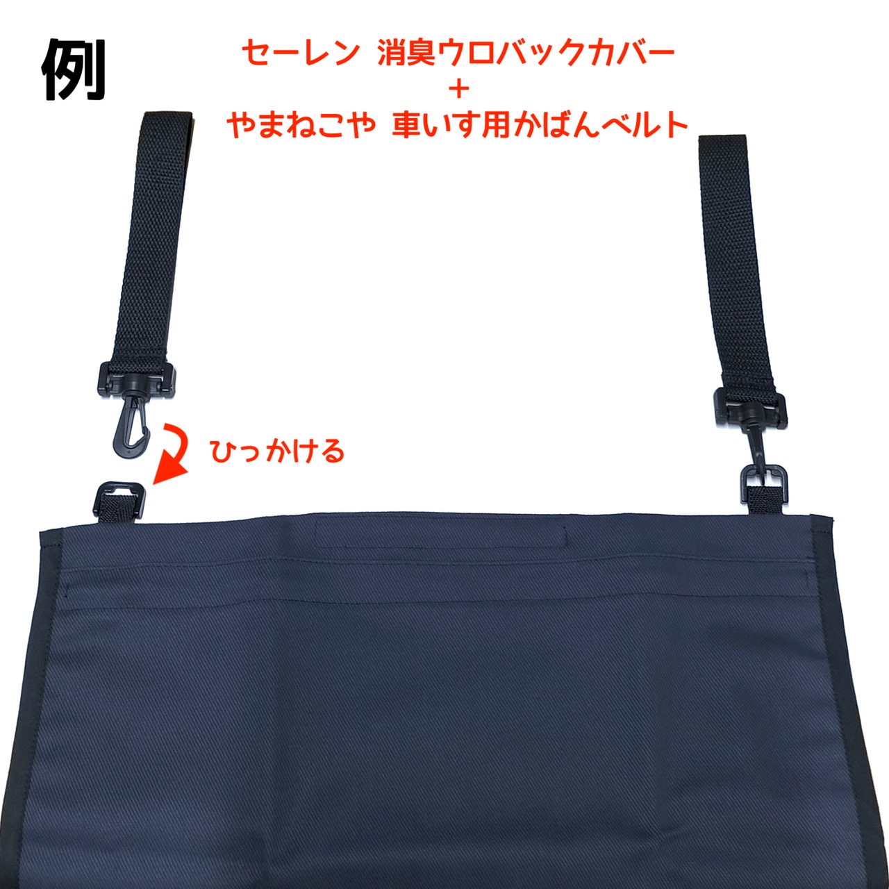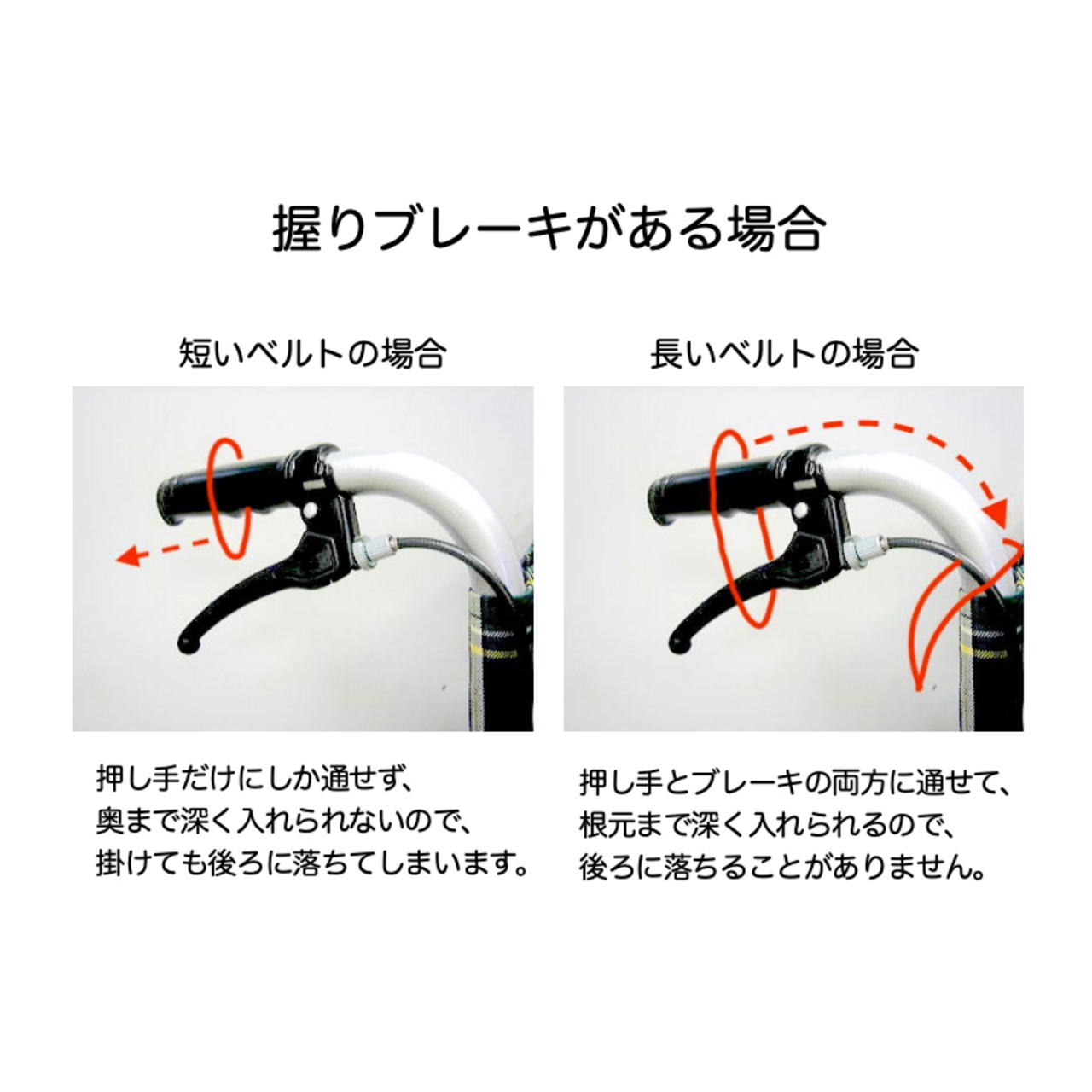 ショルダーバッグのDカンに取り付けて、車椅子の手押しハンドル(介助用グリップ)にカバンを掛けられるようにするための紐。